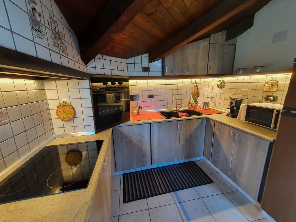 "La Casa dell 'Arco" toma su nombre del arco de entrada, un elemento típico de la arquitectura de Frassinetto, que caracteriza a esta casa histórica. Su núcleo más antiguo probablemente data del siglo XIII al XIV. La unidad se compone de tres habitaciones con atención a los detalles para redescubrir el cálido ambiente de las casas alpinas. La sala de estar con sofá/cama y chimenea precede a la cocina y para completar una hermosa habitación con ducha y un baño cómodo y equipado.