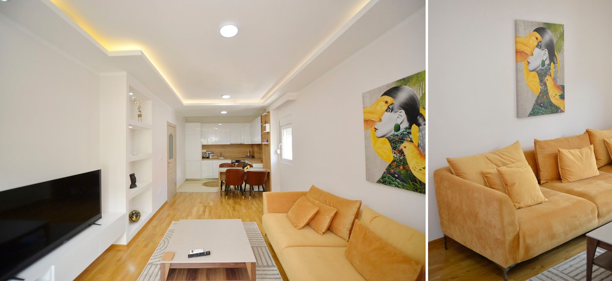 Hey there, welcome to the COMFORT apartment in Budva! This modern and stylish apartment is the perfect getaway for anyone looking for a cozy and relaxed stay! 🏠 We created a special and super cozy vibe to ensure our guests have a 5-star stay with us! ⭐️ With a pool and sauna, unique design, work-friendly setup, well-equipped kitchen, and prime location, this apartment is the perfect choice for your stay in Budva. Book your stay today and get ready to create unforgettable memories! ✨
