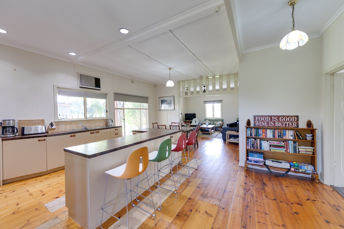 Piambong House está concebida como un escape, un lugar espacioso y elegante para recargar energías. Ubicada en el extremo sur de Clare en 5 acres, esta antigua casa de campo cuidadosamente renovada irradia encanto y sofisticación. Bienvenido a tu escapada en el valle de Clare. Disfruta de la reclusión o sal a explorar, un paseo de 600 metros te llevará al sendero Riesling, a Shut the Gate Wines y al centro de comida, vino y turismo de Clare Valley con una amplia selección de vinos locales, comida y arte.