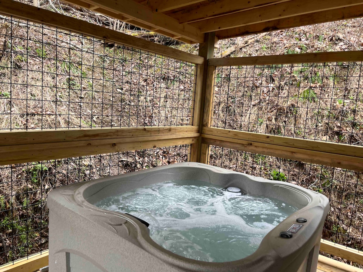 ¡1 acre de felicidad privada y tranquila! Televisor nuevo de 65 pulgadas, ropa de cama, utensilios de cocina, lavadora/secadora, cafetera, café, té. ¡Muchas toallas, toneladas de almohadas, mantas, champú, acondicionador, jabón, jacuzzi, bañera de hidromasaje, porche cubierto, terraza, chimenea y mucho más! ¡No tendrás que irte! ¡Se entregan comestibles! Cerca de bodega, cafetería, restaurantes, puedes ir caminando, ¡pero te sentirás como si estuvieras solo! ¡Cades Cove, montañas a pocos minutos! ¡Rutas de ciclismo, senderismo, rafting y kayak! Descuentos, sí.