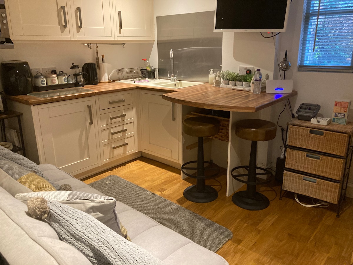 Una acogedora casa de campo con jardín, entrada independiente, baño privado, rincón para la cama, cocina y jardín compartido. Un espacio tranquilo desde el que explora el sur de Manchester y la ciudad. La cabaña tiene una cama doble de tamaño completo con muchas almohadas y un cómodo edredón y una manta eléctrica. Un sofá grande se adapta fácilmente a un cuerpo adicional si prefieres dormir por separado. También tenemos una cuna de viaje para bebés. La casa está preparada para 2 adultos, con 2 niños, pero no es realmente adecuada para más de 3 adultos.
