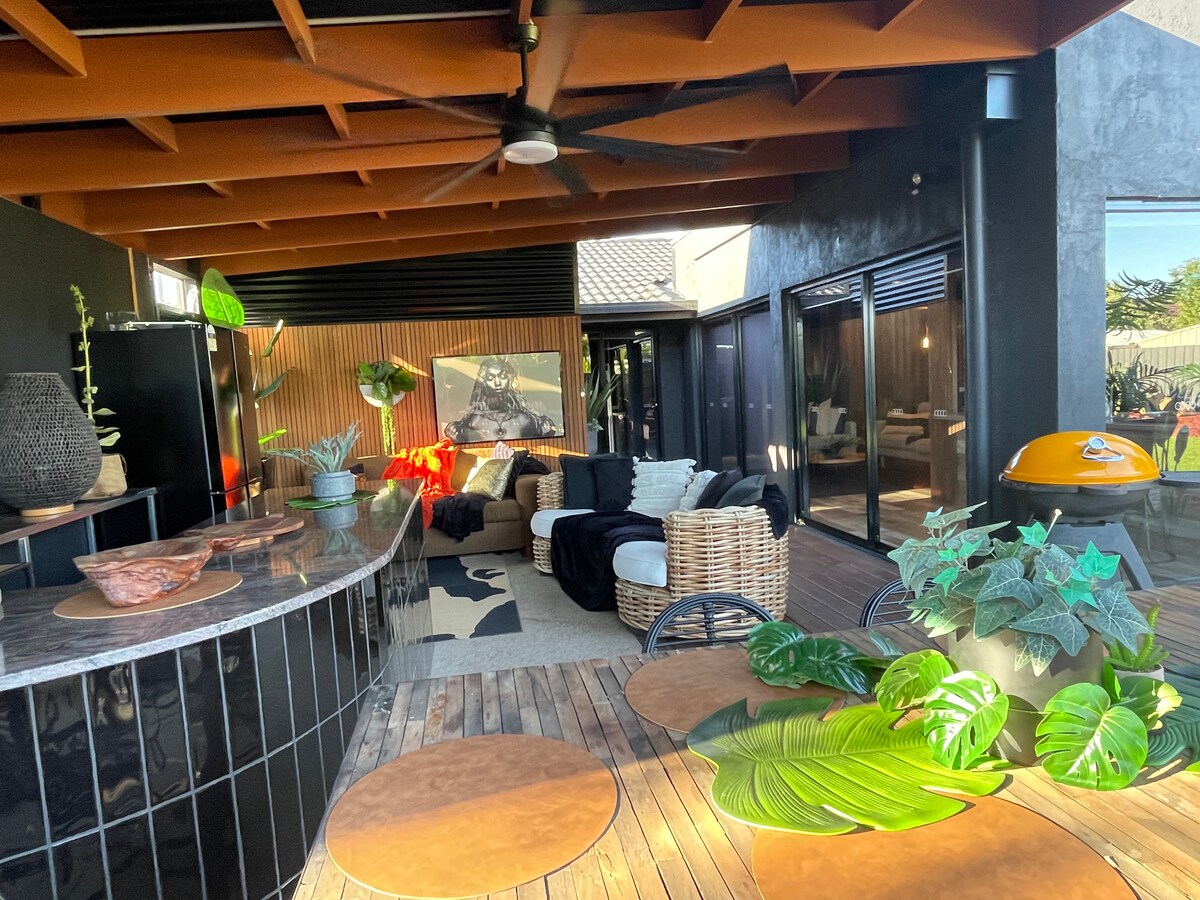 Cuando estés en Shepparton, haz que tu estancia sea agradable relajándote en nuestra casa recién renovada con cocina moderna con una ventana abierta que da al bar y al comedor interior separado y que se asoma al exuberante patio trasero. Retiros familiares relajantes, patio privado con barra de desayuno en la parte delantera de la casa, con vistas a los parques y al parque infantil. Cuenta con cocina al aire libre y zona de barbacoa, jacuzzi climatizado y amplias terrazas. Esta preciosa zona al aire libre está equipada con