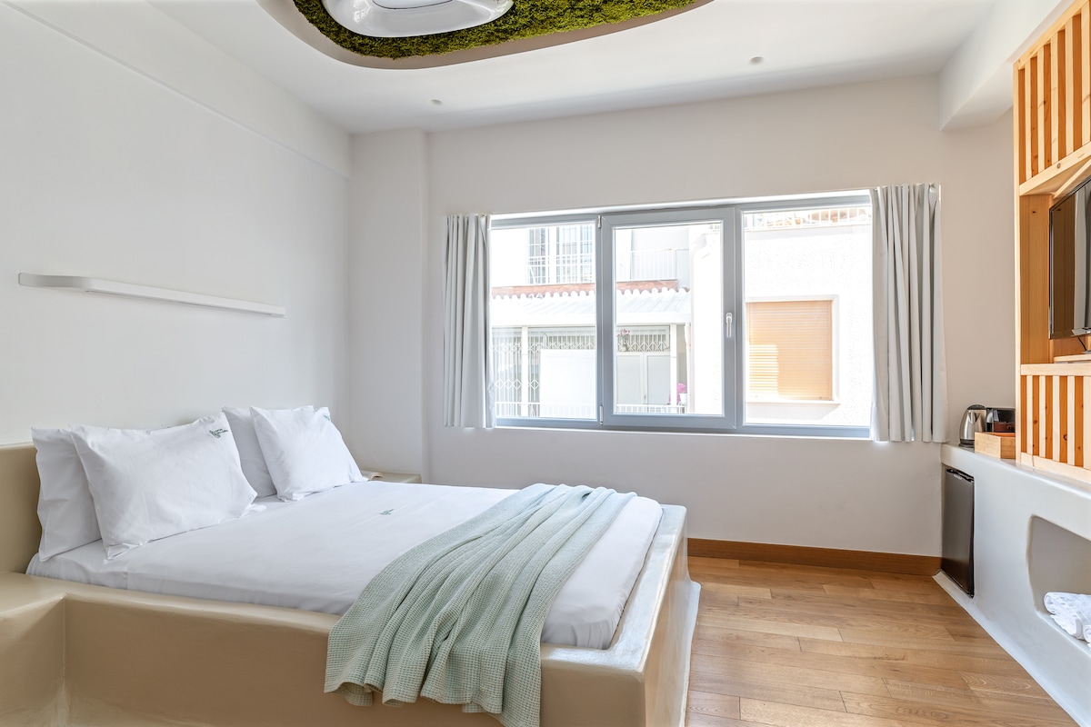 A unique accommodation proposal in the heart of Athens. LOFUS bio-suites combine urban hospitality with elements of biophilic design and island architecture. They are easily accessible as they are located within a short distance from Metro central stations. It is an ideal location as it is close to the famous tourist attractions of Athens, entertainment venues, and the most known shopping pedestrian street of the capital. Lofus provides breakfast on AN ADDITIONAL CHARGE