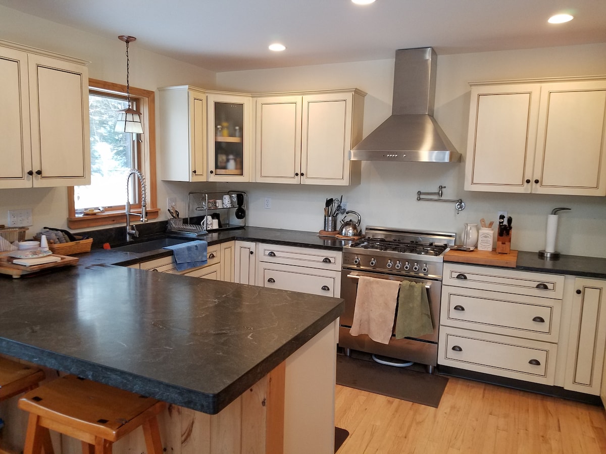 This Chalet has something for everyone for all seasons! Skiing in winter, mountain biking and golfing in the summer, stunning fall foliage and amazing hikes all year round! Enjoy the many activities available or just relax and take in the mountain views on the beautiful deck or S'mores at the fire pit. just 1 mile from Town - so close to all conveniences! Enjoy a roaring fire in the fireplace, BBQ on the porch, and our gorgeous modern kitchen with all the comforts of home. Plus High-speed WiFi!