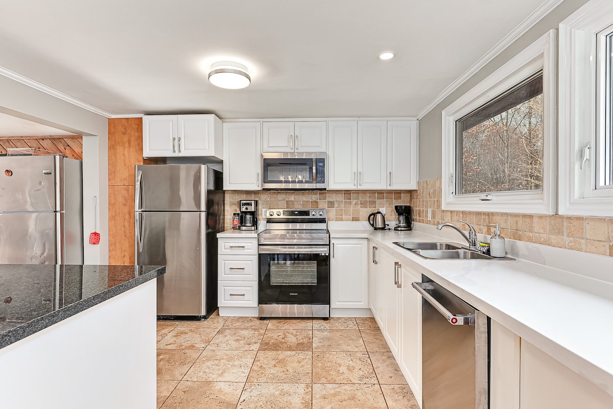 Unplug in our private 3-acre forest retreat. Wake up in a king bed, brew coffee in the fully-stocked kitchen, then step onto the wrap-around deck surrounded by cedar forest. After hiking the Bruce Trail, skiing at Beaver or Blue, paddling Lake Eugenia or enjoying a foodie-road-tour, sink into the sparkling hot tub. Evenings end around the wood stove or the outdoor fire-pit under a star-filled sky. Fast Wi-Fi, cozy beds and thoughtful touches make every stay easy, relaxing and memory-filled.