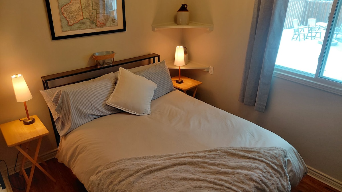 Relájate y desconecta en esta escapada privada rodeada de un bosque tranquilo. Cama California King y cortinas opacas para que puedas relajarte en tu mañana con el canto de los pájaros y el aroma del aire fresco del bosque. Refréscate con una ducha caliente o relájate en una bañera con patas en tu propio baño privado espacioso. Disfrute de 1,2 hectáreas de bosque privado con fácil acceso al pintoresco sendero Bruce.Estacionamiento gratuito, wifi Starlink rápido y un televisor inteligente de 50pulgadas para noches de cine acogedoras.