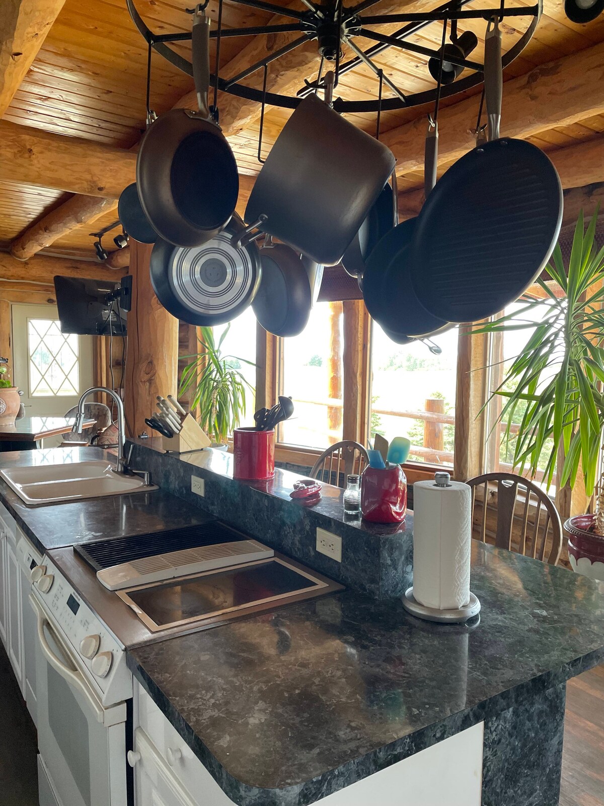 This amazing log home is situated on the North edge of Britton, SD. From this house, you'll enjoy a view that goes on forever. this home features five sleeping areas on three levels. Covered parking, wraparound deck, and everything you need for an amazing vacation. This house is priced by the number of people. enter the correct number of guests. This system fairly accommodates a solo traveler or, or a large group.