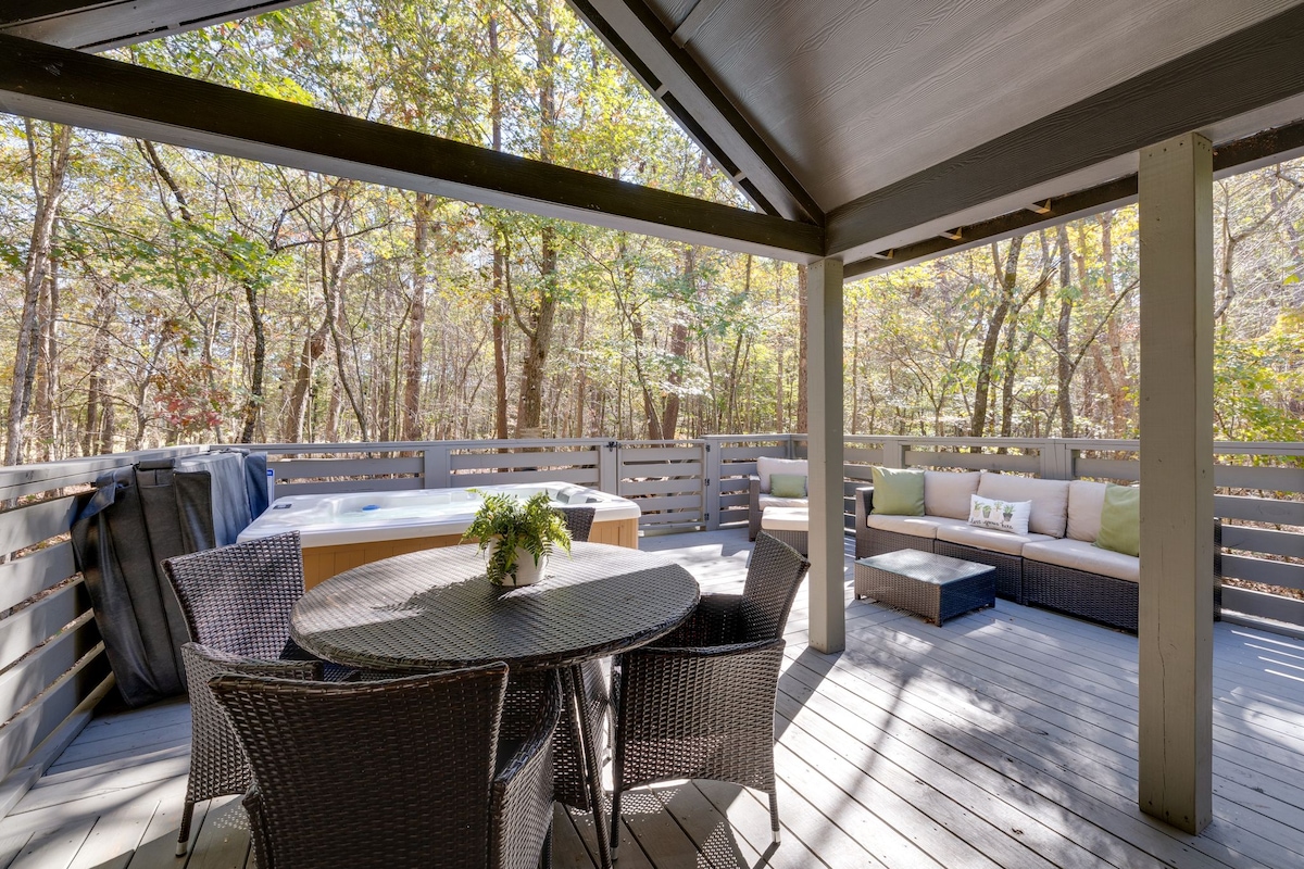 Vuelve a conectar con la naturaleza en esta escapada inolvidable a la casa del árbol. Una de las pocas cabañas de la casa del árbol en Tracy City, ubicada en 2 acres de hermoso terreno boscoso. Estamos a menos de 1 milla del Parque Estatal South Cumberland con acceso a rutas de senderismo, arroyos y vistas a la montaña. Disfruta de los sonidos del bosque en nuestra terraza elevada o relájate en el jacuzzi privado de abajo. El espacio al aire libre recién renovado incluye una parrilla, chimenea, estanque y sillas de huevo colgantes.