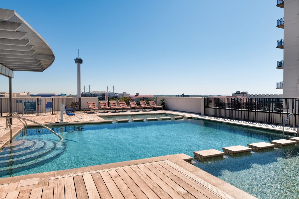 Este centro vacacional te ofrece lo mejor de ambos mundos: más servicios y opciones de unidades en el lugar de las que encontrarías en la mayoría de los centros vacacionales de la zona urbana, además de una ubicación conveniente para el paseo del río San Antonio. Es la mezcla ideal de diversión y emoción urbana de estilo resort. Wyndham La Cascada Resort|1BR Balc Pool River Walk Detalles de la habitación • Tamaño: 812 - 995 • Cocina: completa • Baños: 1 • Capacidad para 4 huéspedes: 4 huéspedes. • camas: cama tamaño king, 1 sofá cama tamaño queen, 1