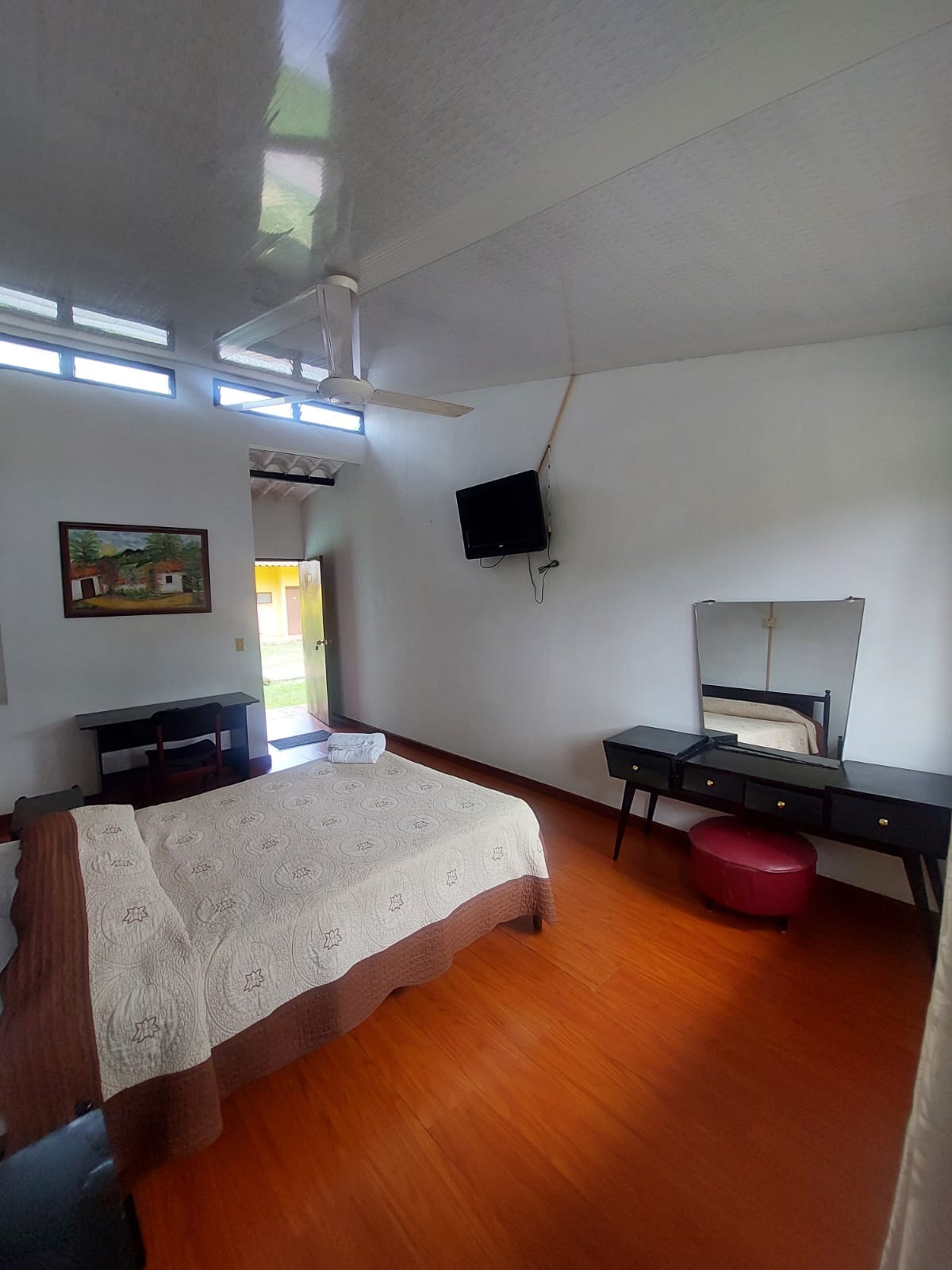 Relájate con toda la familia en este tranquilo lugar para quedarse, con amplias zonas verdes, piscinas, bar, zonas bbq, billar, cancha de tejo, restaurante, cabalgata ecologica, con todo lo necesario para tener un merecido descanso. Cabaña dotada con: -Cama doble -cama individual -TV -Aire acondicionado -Ventilador -Baño privado - Nevera