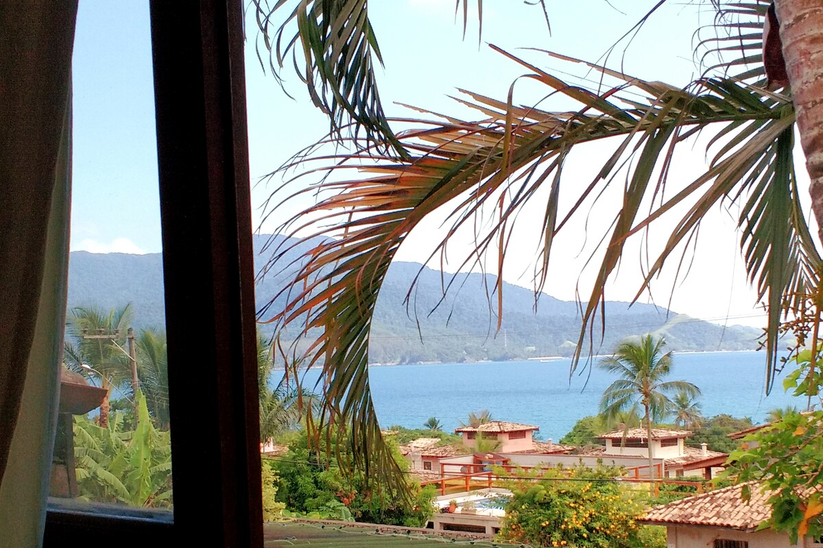 Casa com vista para o mar, piscina, churrasqueira e mesa de sinuca exclusivas dos hóspedes. Tem redes para descanso, ar condicionado em todos os quartos com lençóis e toalhas 100% algodão e Wi-Fi de 100 megabytes. Dispõe de cozinha completa para quem gosta de cozinhar. Próxima a várias praias e cachoeiras, conta ainda com supermercado e farmácia a uma distância caminhável. E fica em Ilhabela, parque nacional de natureza exuberante com vários restaurantes, eventos e shows durante o ano.