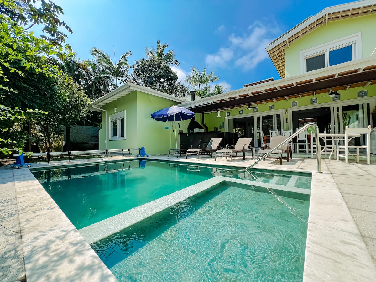 Casa de una planta, frente al mar, a pie de arena, acogedora y con una vista única de Ilhabela. Cómoda, espaciosa y aireada, ideal para familias y amigos. ¡Estamos compartiendo un espacio personal, muy agradable y querido! Un gran espacio para relajarse y pasar días de tranquilidad y paz en São Sebastião y visitar las mejores playas de la costa norte. Con piscina, barbacoa, cocina completa, TV con acceso a canales abiertos y 3 lugares de estacionamiento.