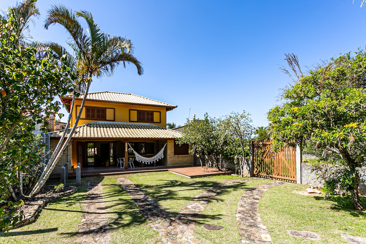 Venha viver uma experiência ao se hospedar nessa linda casa, localizada na Guarda do Embaú, cercada de um imenso gramado e a menos de 10 minutos caminhando da beira do mar. Convidamos nossos hóspedes a viverem dias inesquecíveis nessa casa de alto padrão, super completa com 3 quartos, 3 banheiros, lareira, cozinha, área com churrasqueira, jardim privado e a ter todo conforto esperado para seus dias de descanso.