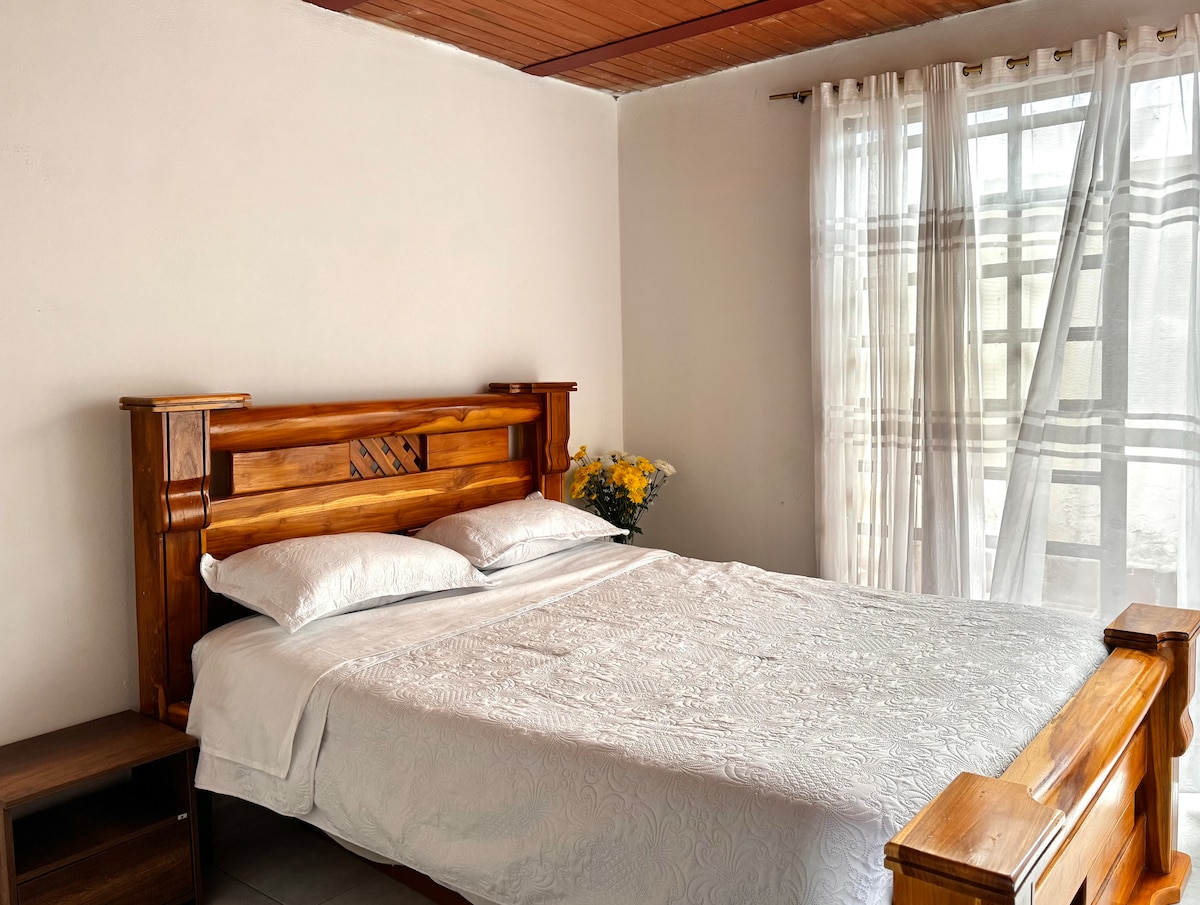 Moderno y acogedor alojamiento en el centro del pueblo. Cuenta con sala con chimenea, minibar y TV, cocina totalmente equipada, habitación con baño privado y agua caliente, WiFi gratuito y zona de lavandería. Todo lo que necesitas para una estadía cómoda y tranquila en Guatavita. Ideal para parejas o personas solas que quieran disfrutar de una larga estadía.