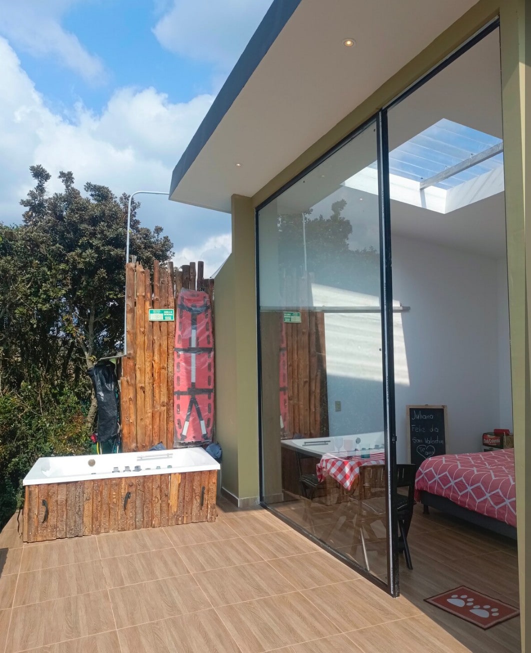Magnifica casa 🏠 con Jacuzzi a 3,000msnm para disfrutar una botella de vino con la mejor vista al embalse de Tominé Este lugar es realmente único. Una tiny house con Con todos los lujos aniversarios Cabaña equipada con Wi-Fi servidora parlante Bluetooth Wi-Fi toallas. Desayuno 🍳 incluido uso gas ⛽ 20 mil se deja jacuzzi caliente 🔥5 pm para,disfrutara atardecer y parte noche 🌙⏰💤💤 un solo uso. al otro día no se alcanza calentar ♨ 2 mil litros agua