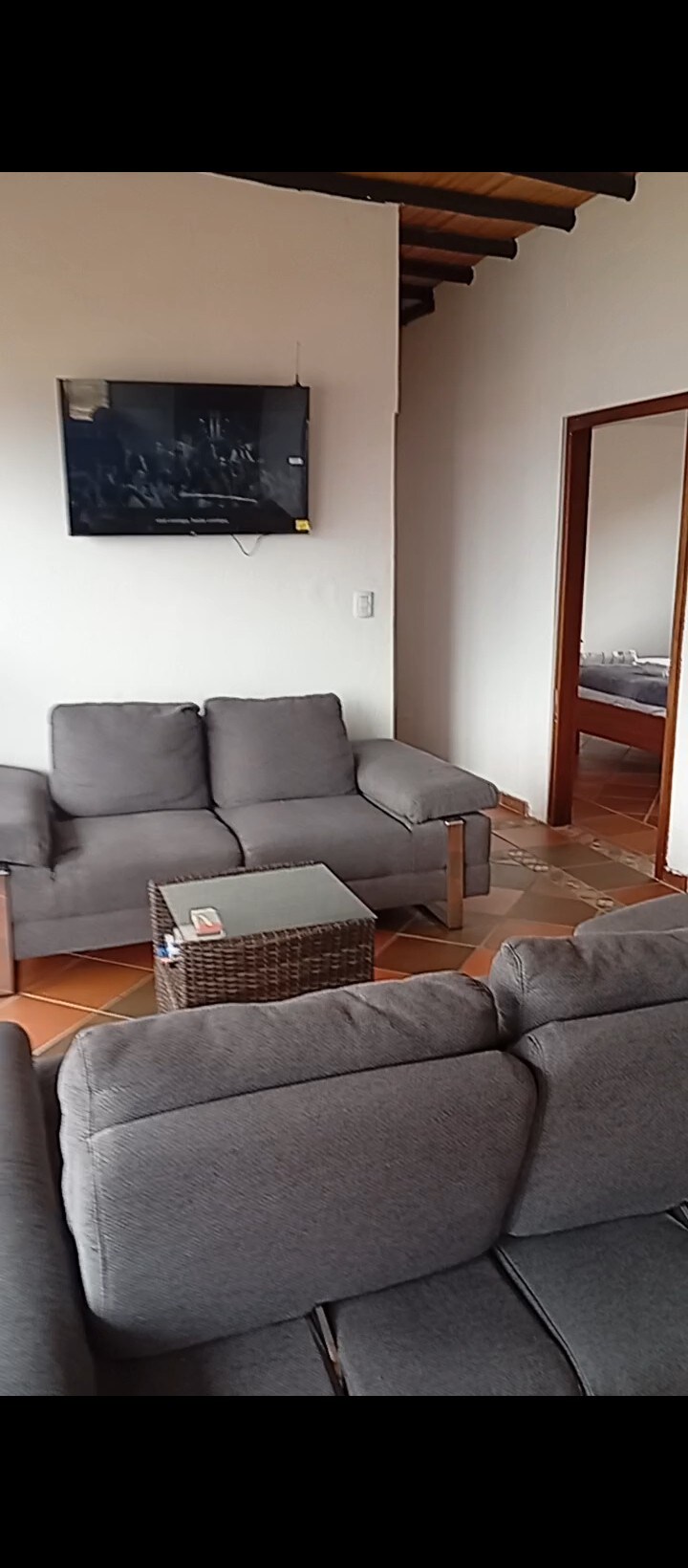 ACOGEDORA CABAÑA CAMPESTRE CON ESPECTACULAR VISTA REPRESA DE TOMINÉ, UBICADA ENTRE GUATAVITA Y SESQUILÉ, DECORACIÓN CAMPESTRE Y SENCILLA. CABAÑA PERFECTAMENTE DOTADA. CAPACIDAD PARA UN MÁXIMO DE 5 PERSONAS, APTO PARA FAMILIAS CON NIÑOS. NO ESTA PERMITIDO FUMAR EN LA CABAÑA, NI REALIZAR FIESTAS O EVENTOS. ALCOBA PRINCIPAL CON CAMA DOBLE, TV 40", DIRECT TV, WI-FI FIBRA OPTICA,ALTILLO CON 3 CAMAS SENCILLAS, 1 BAÑO, SALA-COMEDOR,TV 40". COCINA AMERICANA, TERRAZA, ASADOR A GAS, JUEGOS INFANTILES