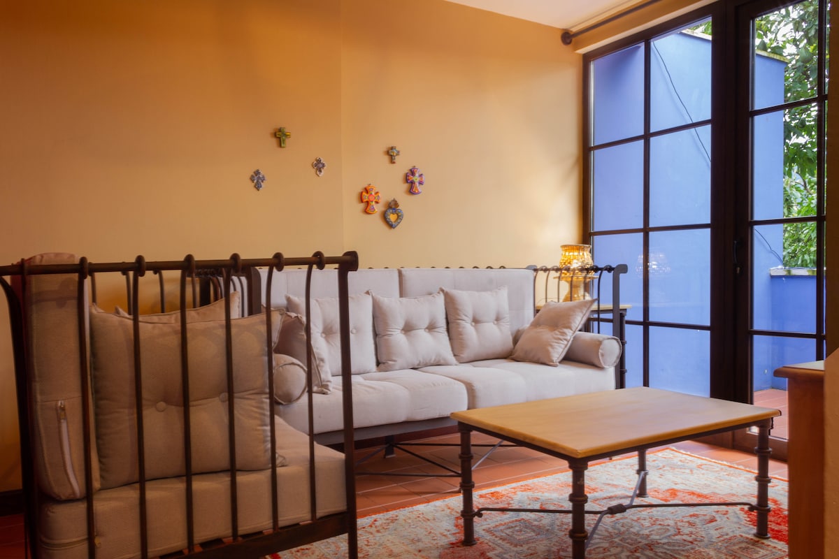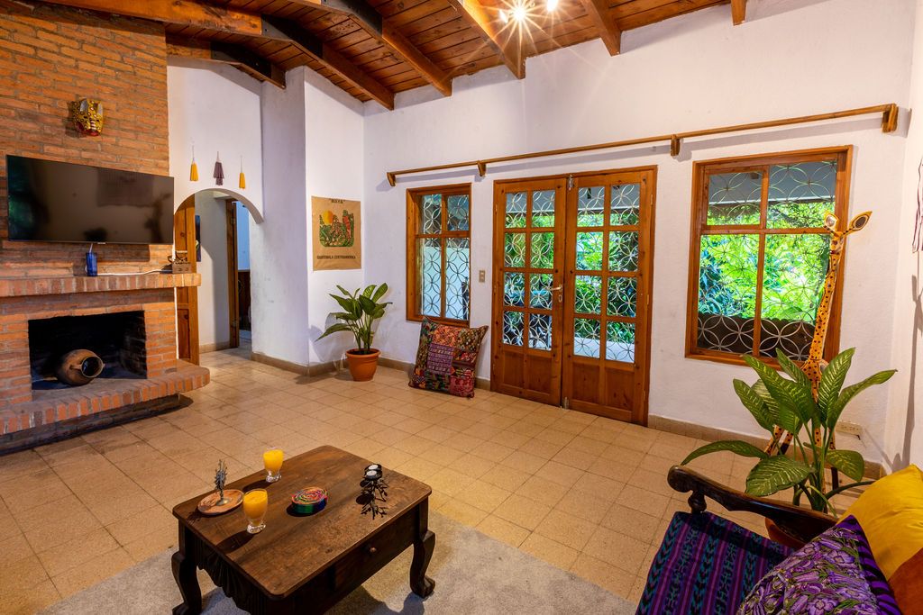 Beautiful entire house, fully equipped, inside stunning property in Alameda Santa Rosa. It has a huge garden and Santa Rosa ruin inside. Gated, safe and with cleaning and guardian service every day. Walking distance to all main attractions in Antigua, perfectly located. Living room, fully equiped kitchen, jacuzzi and outdoor areas to enjoy your stay in Antigua and relax