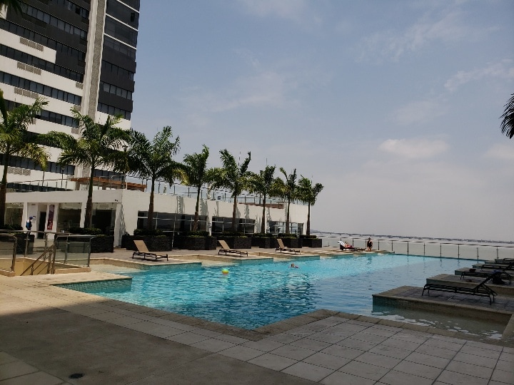 Estacionamiento gratuito Cuenta con Alexa TV en la sala y dormitorio Netflix IPTV con + de 1000 canales, películas y series Ubicada en el Puerto Santa Ana, uno de los mejores lugares de Guayaquil, junto al río Guayas, cuenta con seguridad las 24h. Los servicios como: piscina, gimnasio, jacuzzi son gratuitos, pero al momento se encuentran restringidos en estancias cortas. A pocos metros del malecón 2000, del centro de la ciudad, centros comerciales, aeropuerto, restaurantes, ATM, etc.
