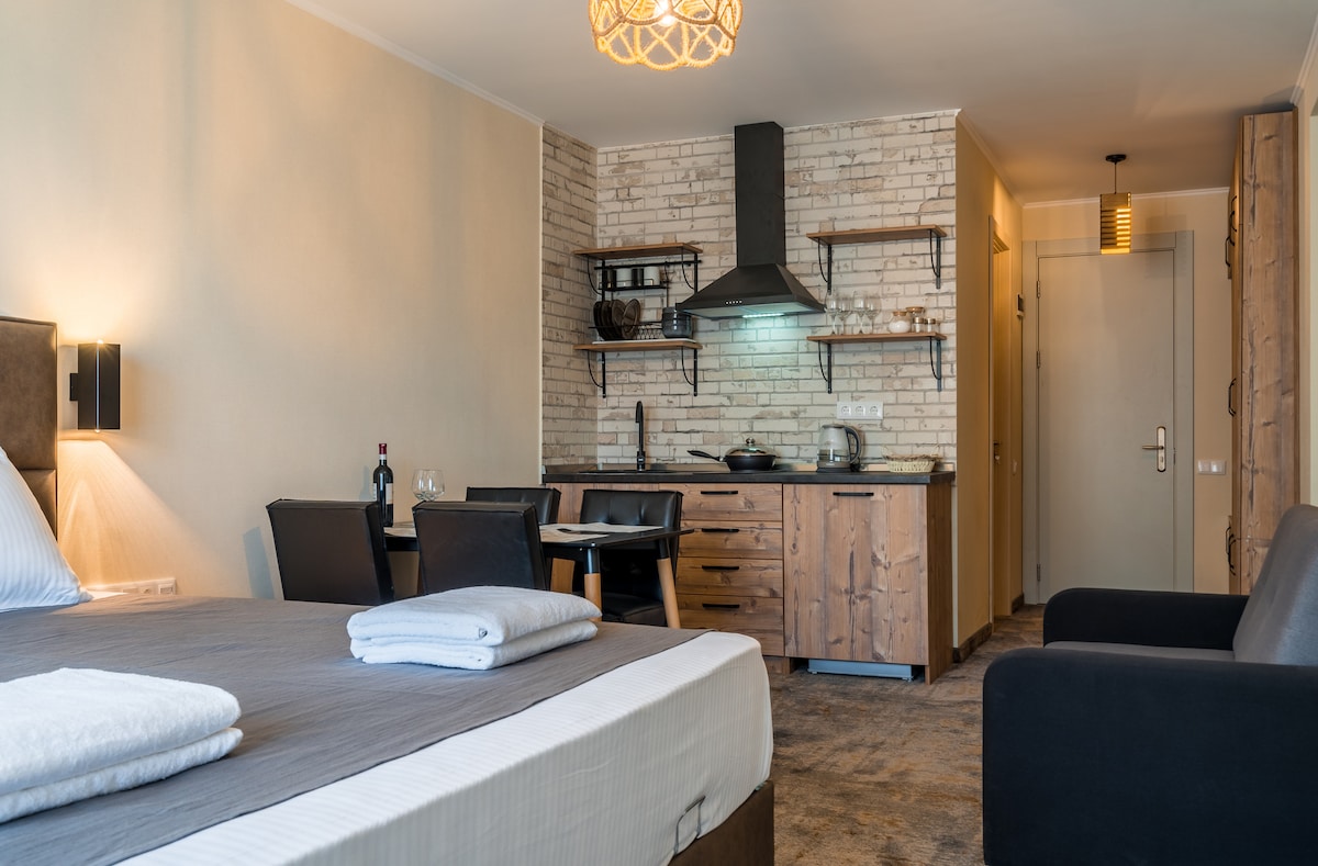- Chemia Studio en Gudauri: tiene un estilo industrial único, diseñado por "Chemia Studio". El departamento dúplex está hecho a mano, con materiales de madera natural, ladrillo y acero. - Chemia Studio en Gudauri: ofrece un ambiente único con una agradable bañera de hidromasaje para la relajación posterior al esquí. Los entretenimientos dúplex incluyen: 1. proyector de películas para noches de cine; 2. Playstation 5 pro.