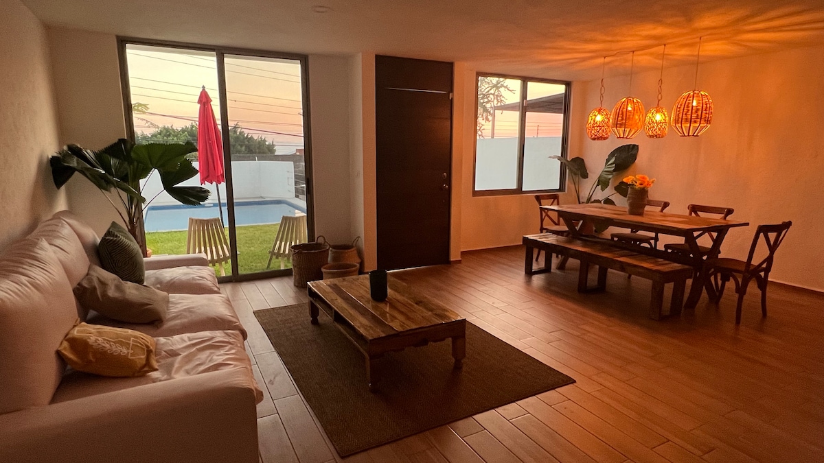 Casa con alberca privada a diez minutos de Cuernavaca y a cinco del mercado de cerámica Tres de Mayo. Queremos que disfrutes con tu familia y amigos. Contamos con horario flexible de entrada y salida.