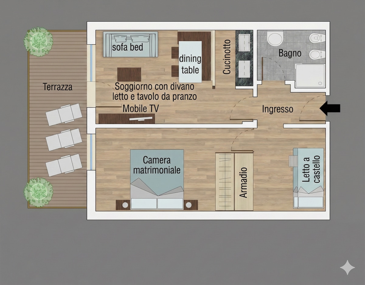 Trilocale max 5/6 pax vista montagne