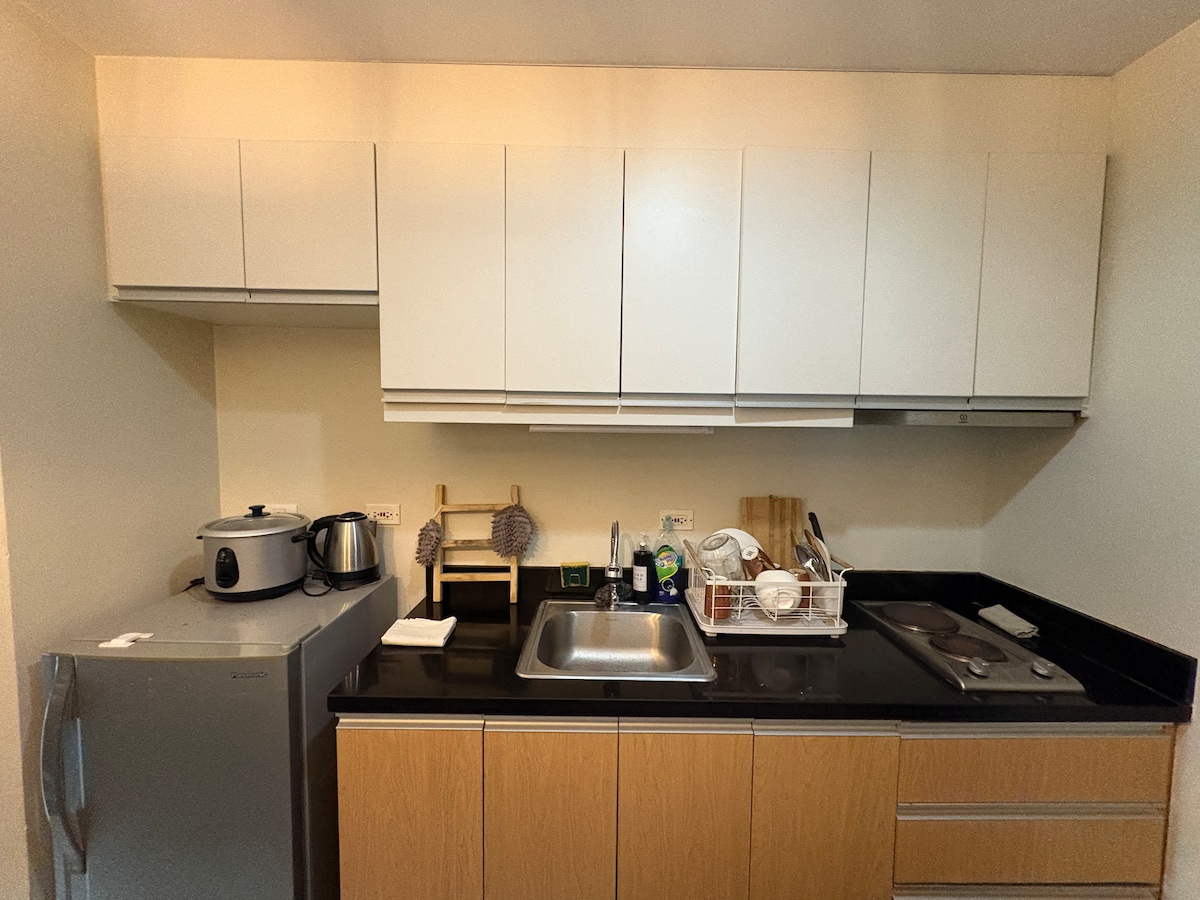 #Cómodo y acogedor apartamento con habitaciones con aire acondicionado, amplia sala de estar y comedor con TV inteligente, cable y wifi. Cocina con nevera, estufa, arrocera, hervidor eléctrico, ollas, sartenes y utensilios. Con generador de reserva. Ubicación perfecta para los participantes de la convención, ya que está cerca del Centro de Convenciones de Iloilo y Megaworld, muy cerca del distrito de Atria, Ateneo de Iloilo, hospital Qualimed, complejo Smallville. A poca distancia a pie de Iloilo Esplanade 1 y 2. Perfecto para familias, turistas y grupos.