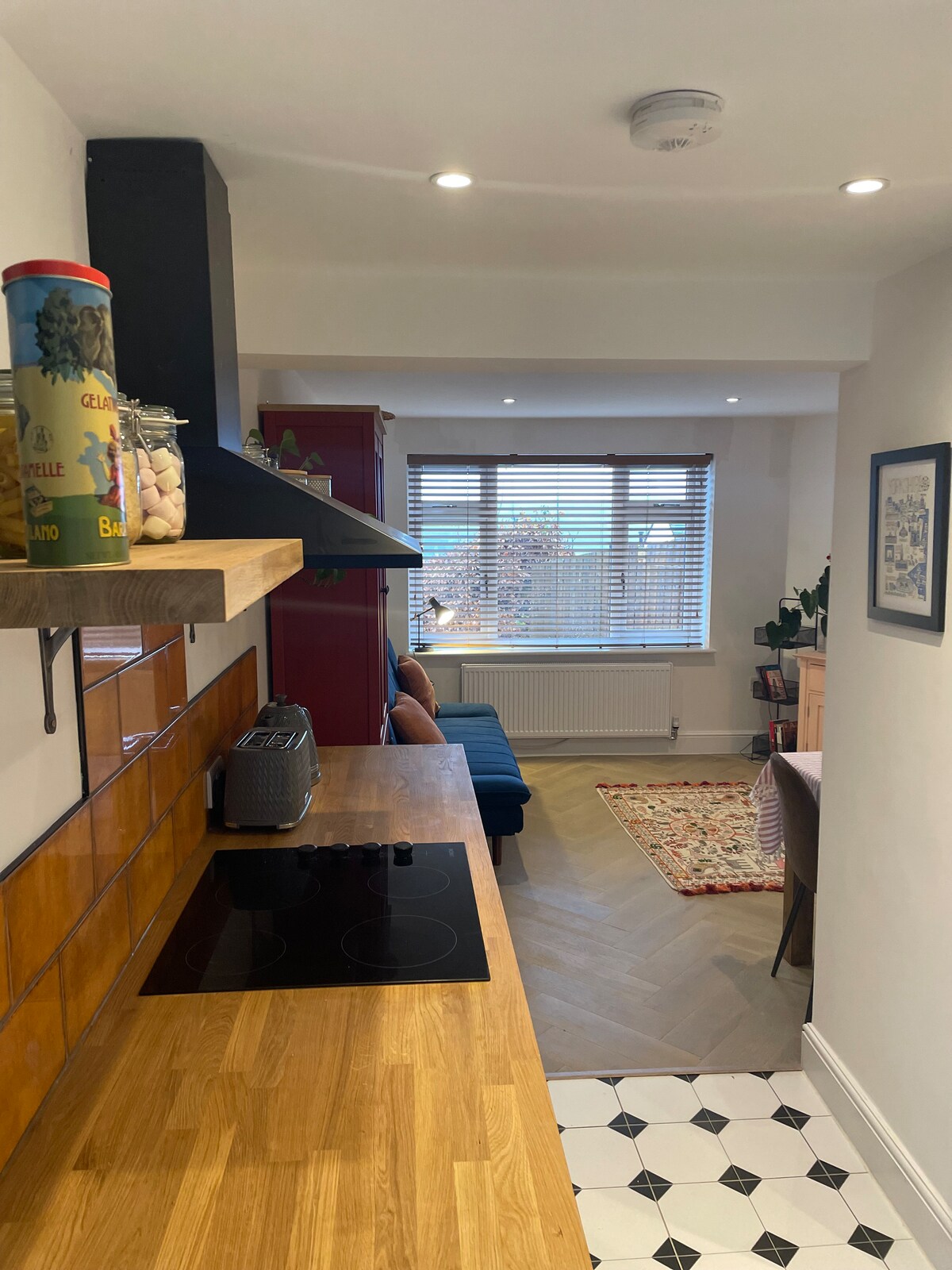 A lovely newly completed spacious self-contained studio Basement/garden flat with natural light. Own garden in a country side setting. Sun loungers provided. Kitchen has microwave, fridge, toaster & sink. 40” TV with Sky TV/Amazon Prime and Netflix. Double bed and sofa. Separate shower room with toilet, shower and basin. Close to Leeds/Bradford Airport and Trinity College. Please note this basement flat is accessed via 12 steps & may not be suitable for guests with mobility issu
