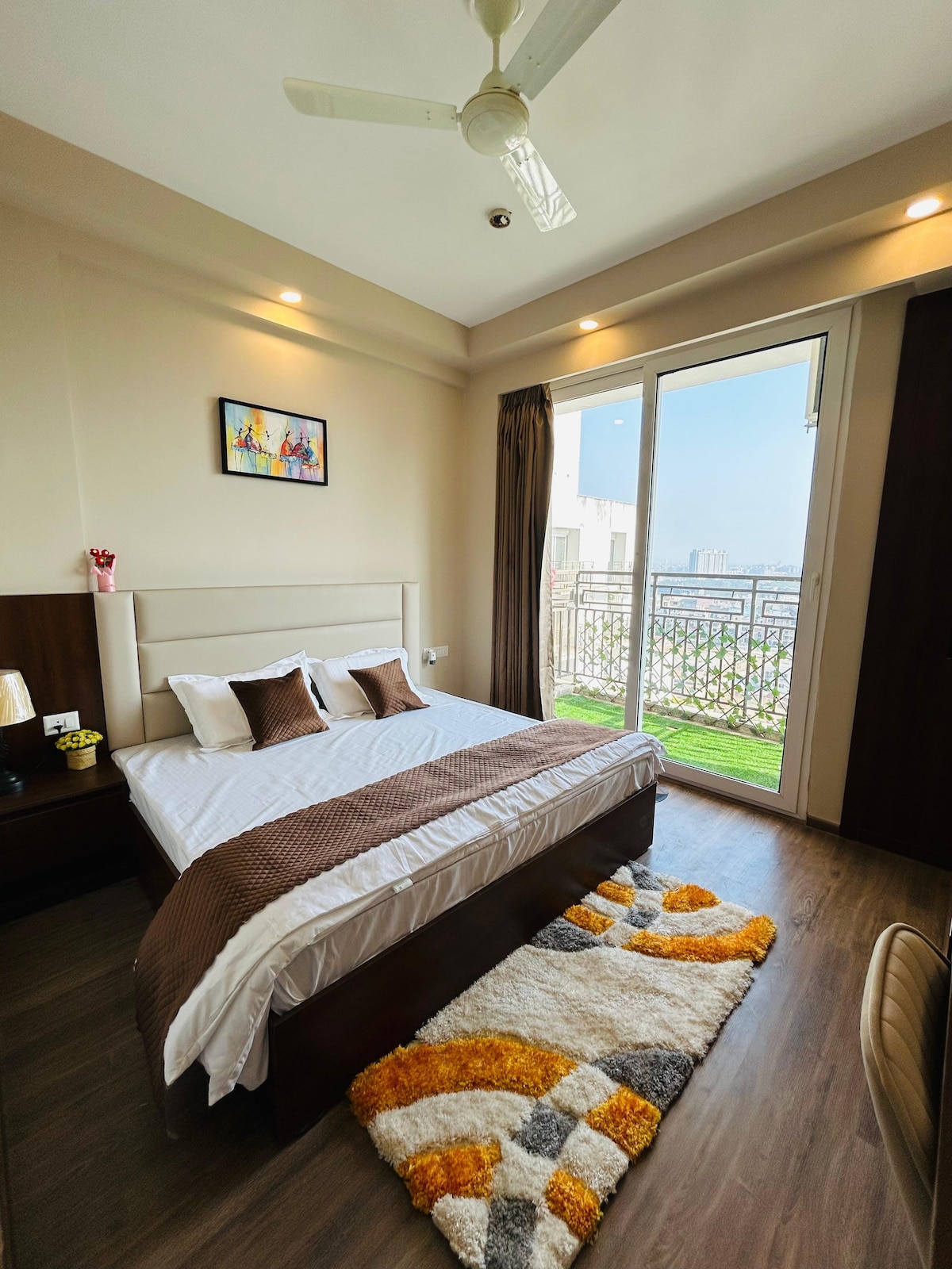 Kick back & relax in this calm & luxurious studio with the warmth of home & the vibe of a high-end hotel. Furnished with a plush King-size bed & modern décor. Amenities: 24/7 Grocery Store Modern Kitchenette High-Speed WiFi & TV Secure Parking outside tower but 24/7 Secured The first 2 floors has commercial shops, offering: Laundry Services Salon Café Medical Store Easy access to the India Expo Mart, Buddh International Circuit. Perfect for couples, solo travellers, or business partners.
