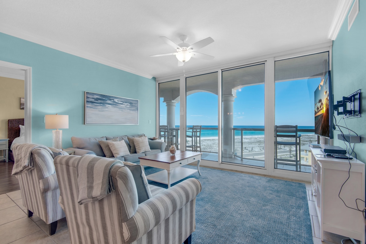 **Recently Updated Interior!** Experience the stunning Gulf of America from the comfort of this beachfront 2-King bedroom, 2-bath condo located directly on Pensacola Beach, named America’s Best Beach by the Condé Nast Traveler Readers’ Choice Awards! This beach condo boasts a vibrant interior filled with beach-themed accents, a private balcony with sweeping ocean views, and access to 2 pools (1 heated) and a hot tub. Enjoy the best restaurants and shopping on the beach, all within a short walk.