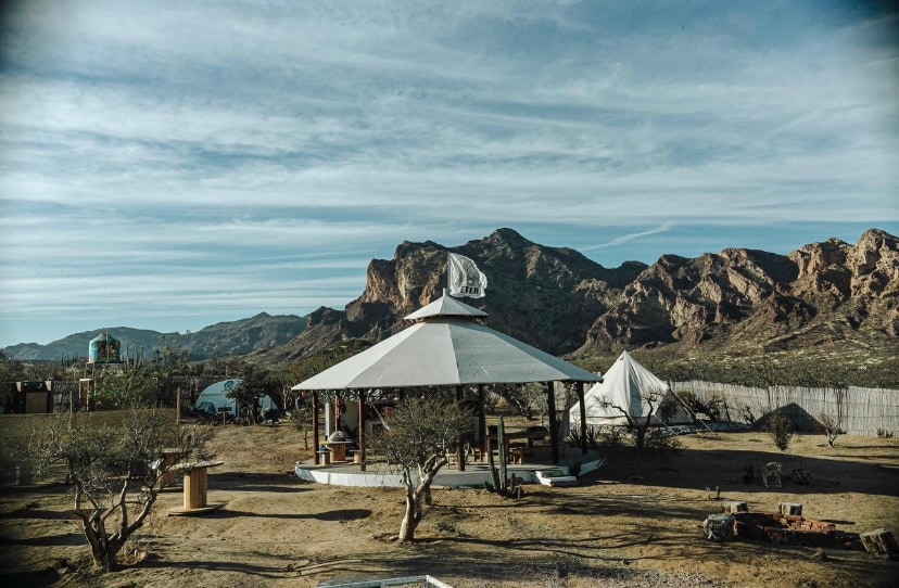 Imagina despertar en el corazón del desierto de Baja. Pasa la noche en una tienda de glamping con colchón matrimonial y baño privado al aire libre. Disfruta una ducha caliente bajo las estrellas, cocina en la cocina exterior o déjanos cocinar para ti! Trabaja rodeado de paz, cactus y silencio. No es solo un lugar para dormir, es un espacio para reconectar, respirar profundo y recordar lo simple y bello que es vivir. ¡Baja te espera!
