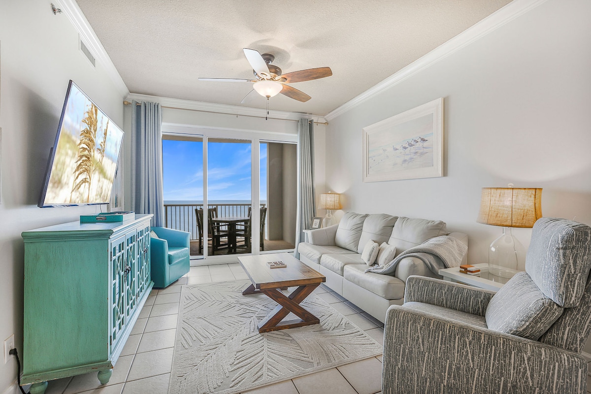 En el corazón de Gulf Shores se encuentra este apartamento frente a la playa con excelentes vistas en todas las direcciones de las playas blancas como el azúcar y las aguas esmeralda. Desde el balcón se puede ver el majestuoso amanecer y el atardecer o maravillarse con los delfines jugando. Directamente al este se encuentra la playa pública con muchas comodidades para toda la familia, incluidos restaurantes, tiendas y un parque infantil. Después de un día divertido, prepárate para hacer la cena en la cocina bien equipada, relájate con la alegre decoración y siéntate cómodamente.