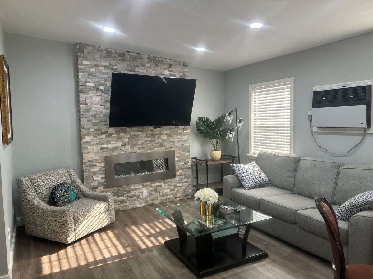 Villa tropical con piscina en el centro de St. Pete construida en 2022, a solo 1 milla de Pinellas Trail, a 2 millas de restaurantes del centro de la ciudad y a 5 millas de Treasure Island Beach. La eficiencia de una habitación incluye una cómoda cama tamaño queen murphy, baño completo (con ducha, sin bañera), TV grande de pantalla plana, con bar, microondas y cafetera. Los huéspedes tendrán acceso privado a la piscina. NO se permite fumar en la propiedad y se informará.