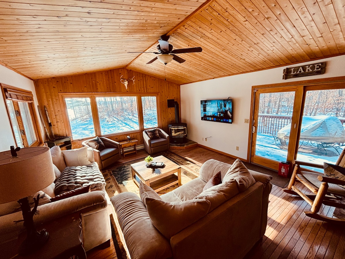 Relájate en The Nordic, donde el encanto escandinavo se une a la comodidad moderna. Disfruta de ropa de cama de felpa, chimenea, cocina totalmente equipada y acabados de lujo. Explora 175 pies de orilla del lago, una playa de arena, tablas de remo y un muelle para barcos. Relájate en el jacuzzi para 6 personas con vistas al lago o ve al sendero Paul Bunyan para una aventura durante todo el año. Perfecto para familias, parejas o amigos. Servicios: televisores inteligentes, juegos, lavadora/secadora, chimenea, curso ninja y mucho más. ¡Reserva tu retiro ahora!
