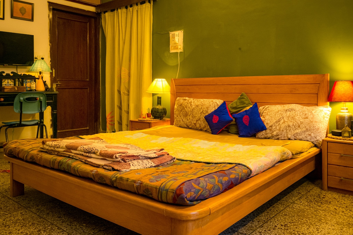 Bienvenido a nuestro acogedor ático en el segundo piso, con entrada privada y un encantador patio. La casa ofrece 2 dormitorios con aire acondicionado, cada uno con una cama tamaño king, 2 baños (uno adjunto, otro en la sala de estar), una cocina con filtro de agua RO y una pequeña área común con nevera. También se proporciona Wi-Fi de alta velocidad de Airtel y un escritorio. Nota: Si reservas para 1 o 2 personas, 1 dormitorio y 1 baño permanecerán cerrados para una experiencia más personalizada.