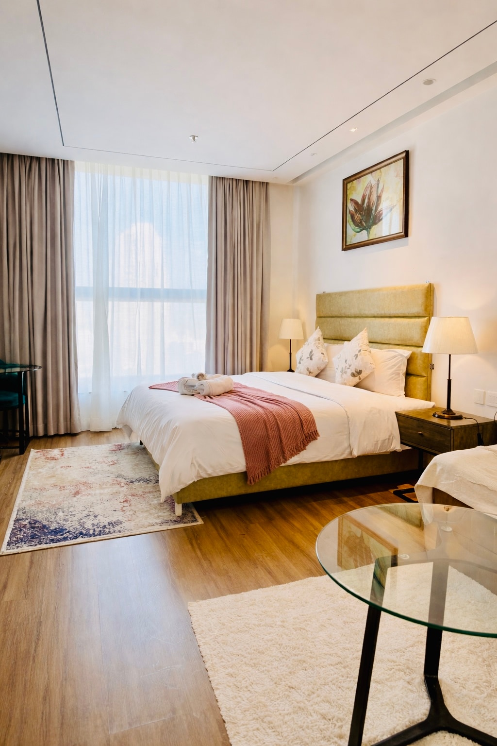 Bienvenido a tu hogar lejos de casa: el lujo se encuentra con la tranquilidad en nuestro exquisito apartamento con servicios de estudio en el vibrante corazón de Gurugram. Ubicado en medio de una exuberante vegetación y deslumbrantes luces de la ciudad, este refugio contemporáneo está diseñado para aquellos que buscan la mezcla perfecta de comodidad y sofisticación.