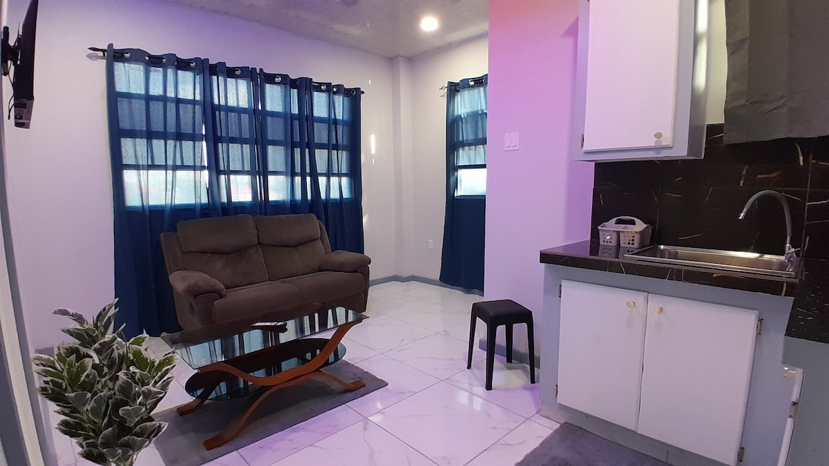 Home away from home. The beauty of Guyana in style & comfort. Modern fully furnished 2-bedroom apartment. Semi master bdrm attached to bathrm. Kitchen with refrigerator, microwave, stove, kettle. Two queen-size beds. Elegant bathroom. Hot/cold water. Fully air conditioned. Security gates on all windows and doors. Wifi. Located in the developing Remigrant Scheme of Providence, East Bank Demerara. Minutes away from National Stadium, Amazonia Mall, Starbucks, Gym, Ramada Hotel, Georgetown.