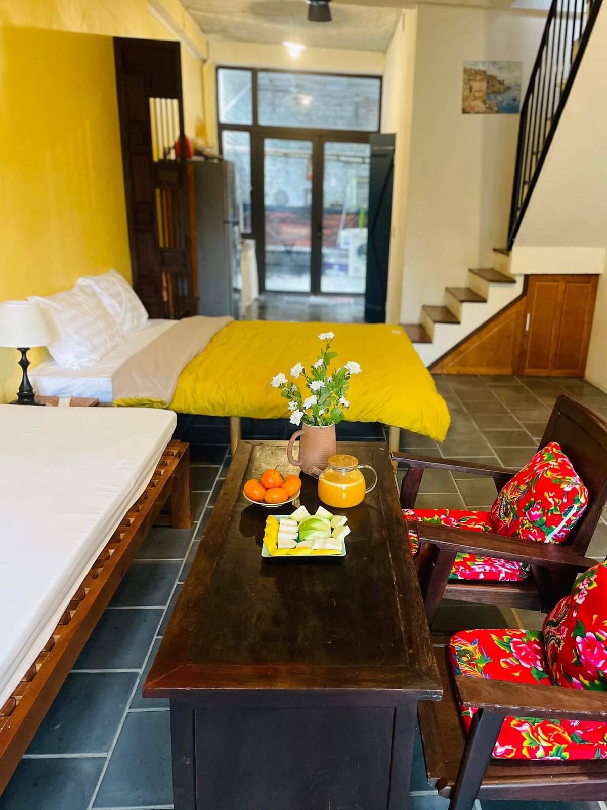 Nuestros estudios, perfectos para parejas, familias pequeñas o viajeros solitarios, cuentan con cocinas privadas, aire acondicionado de 2 vías y un generador de respaldo. A solo 5 minutos a pie, un minimercado ofrece comestibles para tus comidas, o puedes pedir platos vietnamitas de estilo familiar preparados por nosotros. Sumérgete en la relajación en una piscina vigilada por la comunidad a solo 100 metros de distancia, abierta de abril a septiembre. Crea recuerdos en los talleres de cerámica del hotel y déjanos encargarnos de los traslados al aeropuerto y de las impresionantes excursiones a la bahía de Halong.