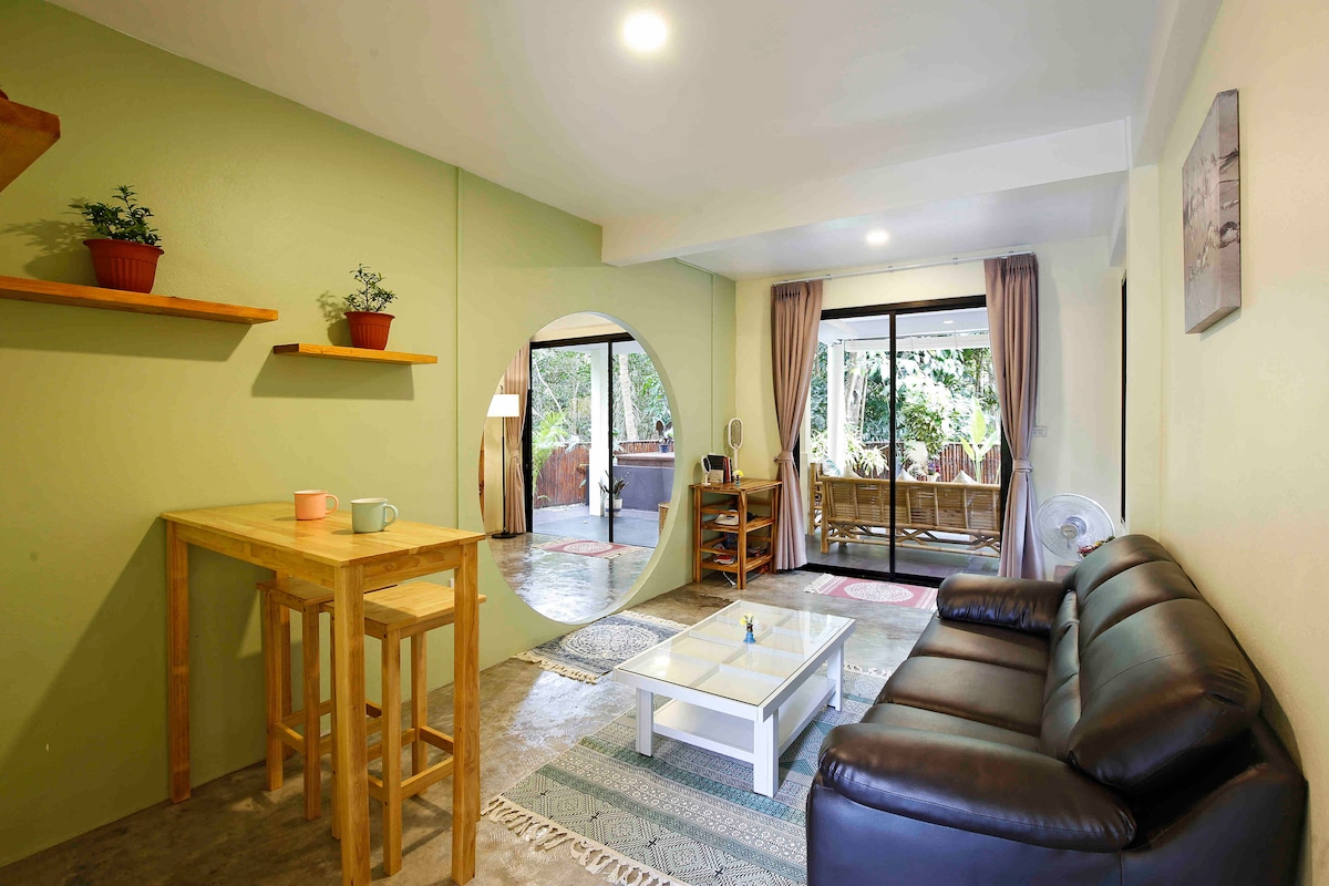 Enjoy magical sunsets from your private balcony in this bright and stylish 2-bedroom apartment just 30m from the beach. Located on the top floor of a modern house with a private entrance and full privacy. Surrounded by tropical calm, you’re perfectly placed between Thong Sala and Haad Rin — close to cafés, yoga, the night market, and the energy of the Full Moon. Wake up to birdsong, fall asleep to the sound of waves.