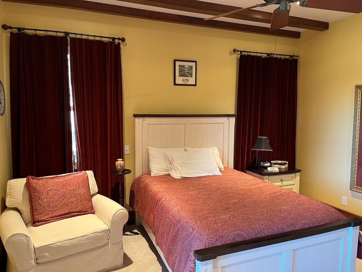 Escape to the pristine NE GA mountains! Super-private, Palm Lake Cottage (PLC), nestled in the Smokey Mountain foothills, provides a super-comfortable, countryside environment with beautiful pastures/woods views, a secure, private fenced backyard, walking/hiking trails in 10+ acre pastures & 40+ acre woods. Closest neighbor; over 600' away. Deer & wildlife abound. 3-min. walk to our private 3-acre, spring-fed lake for fishing, swimming, boating.