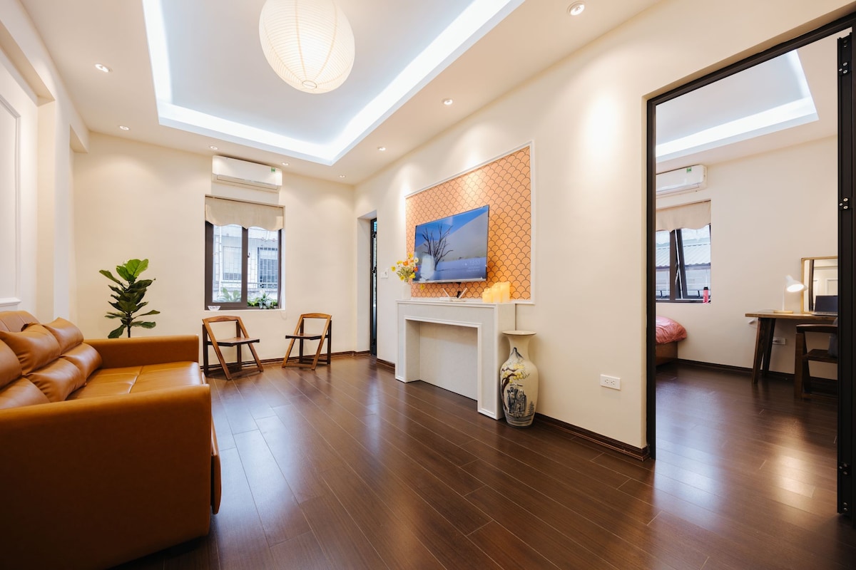 Japandi Comfort cerca del lago Hoan Kiem: a solo 5 minutos a pie del emblemático lago de Hanói, este apartamento de 40 m² combina el minimalismo japonés con la comodidad escandinava. Disfruta de una ventana luminosa con vistas a la calle, una cocina totalmente equipada, Netflix y una lavadora-secadora. Rodeado de cafeterías, lugares emblemáticos y el encanto del casco antiguo, es el refugio perfecto para los viajeros que buscan estilo, comodidad y conveniencia.