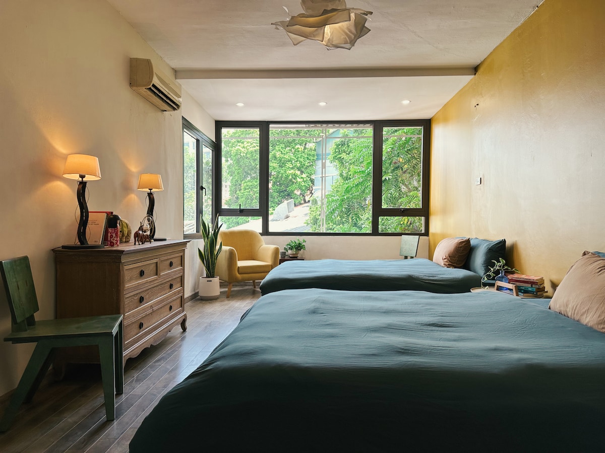 Grandpa: una acogedora casa de familia en el corazón del casco antiguo de Hanói. Ubicado en una calle tranquila y arbolada a solo 400 metros de la Casa de la Ópera, este apartamento iluminado por el sol de 40 m² ofrece 1 dormitorio con 2 camas tamaño queen, una cálida sala de estar con proyector (Netflix/YouTube), cocina totalmente equipada, baño espacioso, balcón frondoso, wifi de 300 Mbps y aparcamiento gratuito. Ubicado en el tercer piso a través de las escaleras (sin ascensor). Apto para familias, céntrico, con luz suave, escalera vintage y ambiente tranquilo: una suave porción de la antigua Hanói.