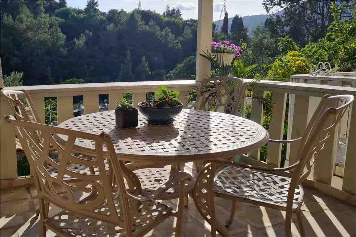 ARTSEA is an amazing studio apartment, with its own private entrance via outside staircase, on the second floor of our stone house in the enchanting Artists' Village of Ein Hod. The studio is overlooking the Mediterranean Sea and Carmel hills. The location is approx. 5 minutes walk from the center of the village where guests can enjoy the local museum, galleries, restaurant, cafe and pub. Private parking available on site. Flat screen TV and free Netflix and WiFi.