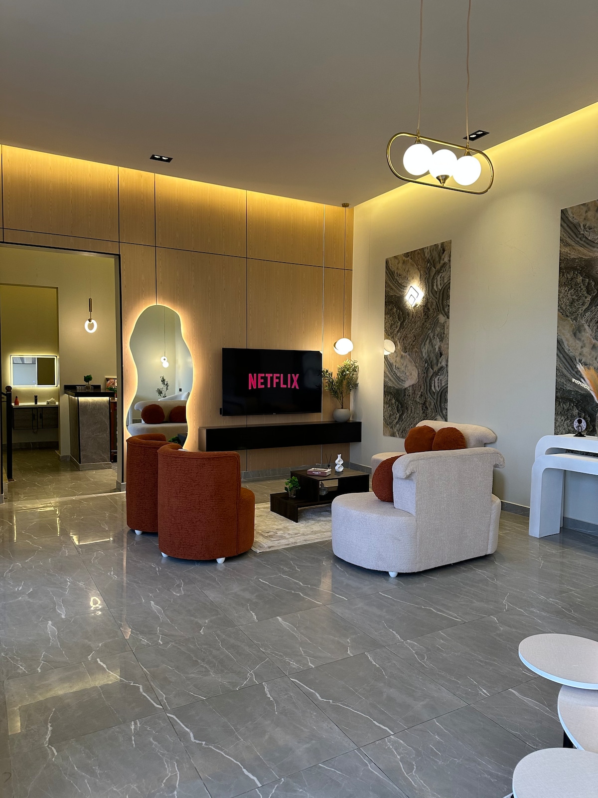 Villa de lujo con salón y dormitorio