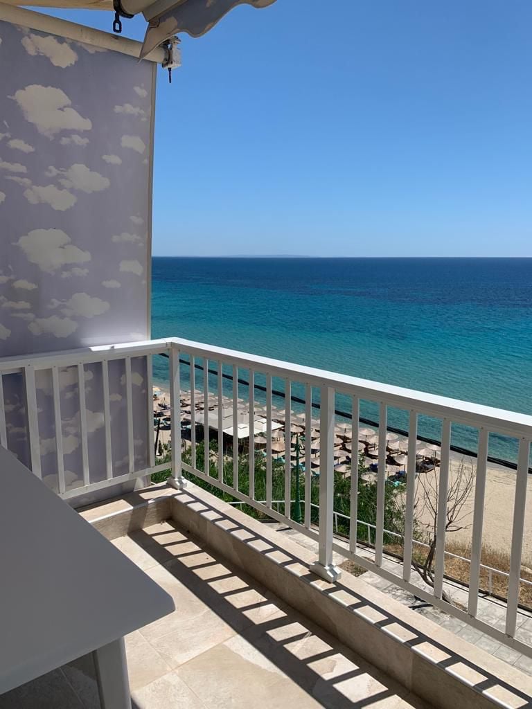 Enjoy your vacations in our renovated marvellous view appartment! Located at the side of a hill, overlooks the big blue of Chalkidiki and Mount Athos. Enjoy your vacations with your family or friends at this unique terrace, having a great BBQ, having breakfast or simply a glass of wine.