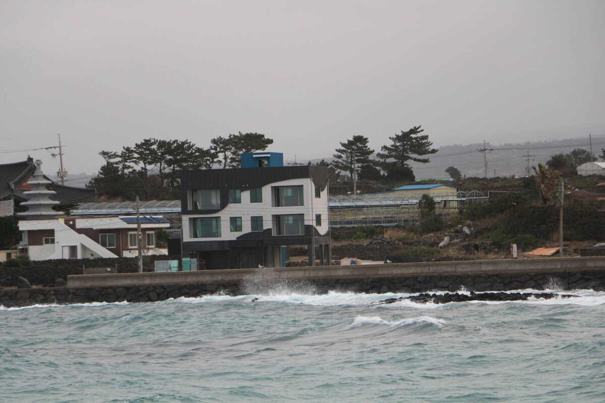 Hola. Ubicado sobre un acantilado en el centro de Seogwipo, este espacio ofrece vistas al océano y a las islas. Con 66㎡ garantiza privacidad y tiempo propio. Aunque es tipo estudio, el dormitorio, sala y cocina están claramente separados, brindando amplitud y comodidad. En la terraza podrá disfrutar del spa y de una barbacoa con vista al mar. Desayune frente al mar en la piscina infinita a diario. La piscina abre de mayo a octubre. El lounge ofrece desayuno gratuito con vistas a Beomseom.:)