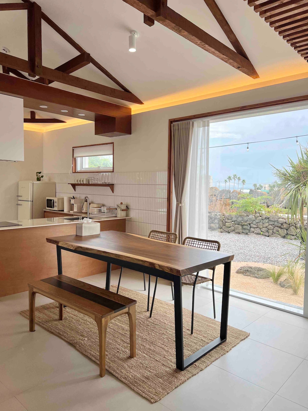 Lee todas las instrucciones del alojamiento hasta el final. Yes Stay es un alojamiento para 2 personas. (1 habitación principal abierta para 2 personas) El anexo del segundo piso es privado para los huéspedes. Durante el día, puedes ver la montaña Hallasan y el mar de un vistazo, es un espacio curativo lleno de campos de mandarinas y árboles por todas partes, y por la noche, es un lugar tranquilo y acogedor con hermosas puestas de sol frente a ti. Puedes caminar tranquilamente por el bonito camino de la pared de piedra y conocer muchos restaurantes, tiendas y cafeterías calientes a 5-6 minutos caminando. Puedes ir a la carretera costera a 15 minutos en auto. Gwakji y la playa de Handam están cerca. Alójate en YeStay y viaja a la hermosa Jeju mientras te sientes relajado y tranquilo.