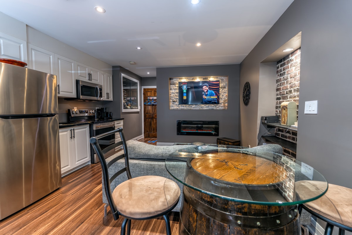 Esta elegante y acogedora casa de 2 dormitorios ofrece todo lo necesario para una estancia cómoda. Disfruta de privacidad, una cocina totalmente equipada y amplias habitaciones con TV inteligente y wifi ultrarrápido. Ideal para familias, grupos pequeños o viajeros de negocios, nuestra suite cuenta con un diseño contemporáneo con servicios bien pensados. Convenientemente ubicado junto a la autopista 401, a poca distancia en auto de Toronto y las Cataratas del Niágara. ¡Reserva ahora para disfrutar de una mezcla de comodidad, lujo y ubicación!