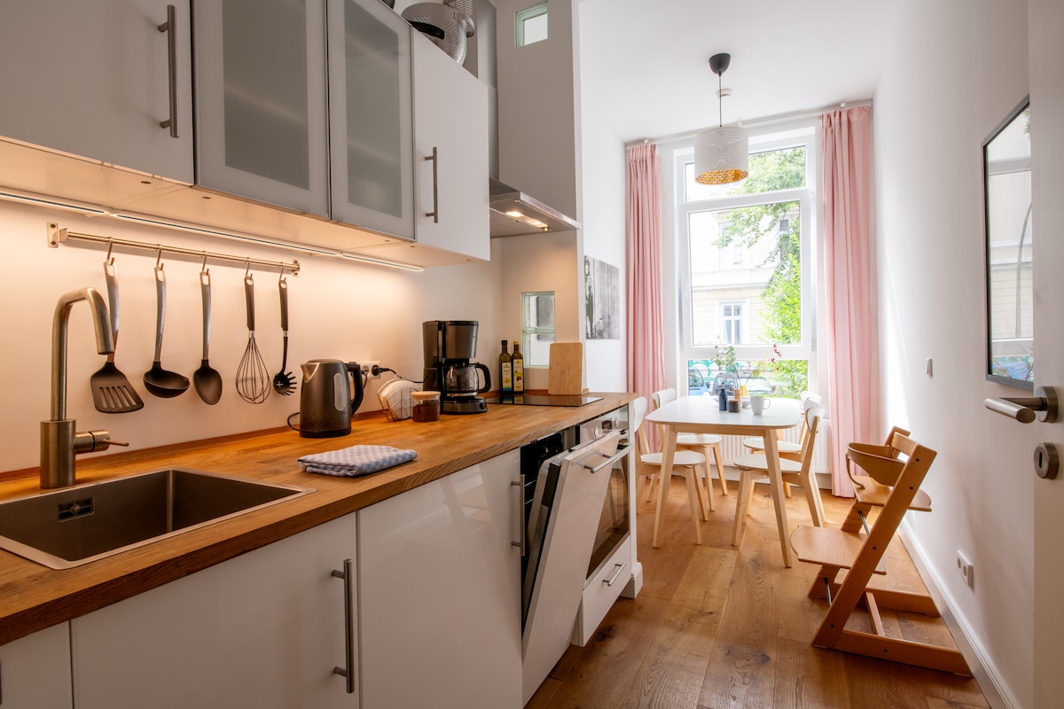 Hermoso apartamento en una ubicación tranquila en el patio en el borde del Schanzenviertel. Alójate en la villa del comerciante, construida en 1885 y renovada en 2020, en una calle residencial de tráfico. Encantados antiguos con modernas comodidades similares a las de un hotel, una insonorización mejorada y una cocina bien equipada. A poca distancia a pie hay numerosos bares y restaurantes en el popular distrito de Sternschanze. Distrito apto para niños con muchos parques infantiles.