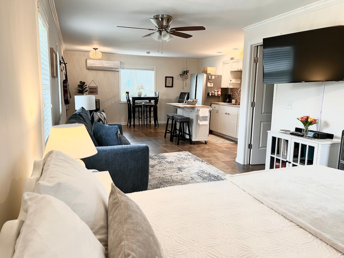 Come be our guest in North Chattanooga! Luxury studio apartment (private entrance) located one mile outside of the heart of all that downtown Chattanooga has to offer. This renovated space includes a queen bed, twin bed ( plus trundle) with 1 full bath. Located next to the entrance to Stringers Ridge Trail (currently closed) so bring your bikes and enjoy all our town has to offer. Also the skylight in the bedroom has been removed.