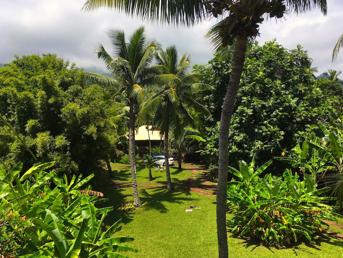 ¡Aloha! La casa de campo Hana Harvest es el lugar perfecto para relajarse y explorar la belleza de Hāna y sus alrededores. Totalmente renovado y redecorado, incluyendo nuevos electrodomésticos modernos, un nuevo colchón de algodón orgánico, wifi y una moderna decoración tropical de lujo. Te sentirás mimado mientras estás en la naturaleza. Ubicada al nivel de las copas de los árboles, la vista panorámica de los árboles y flores circundantes se puede ver desde todas las ventanas y se disfruta especialmente desde el gran lanai con hermosas vistas al mar.
